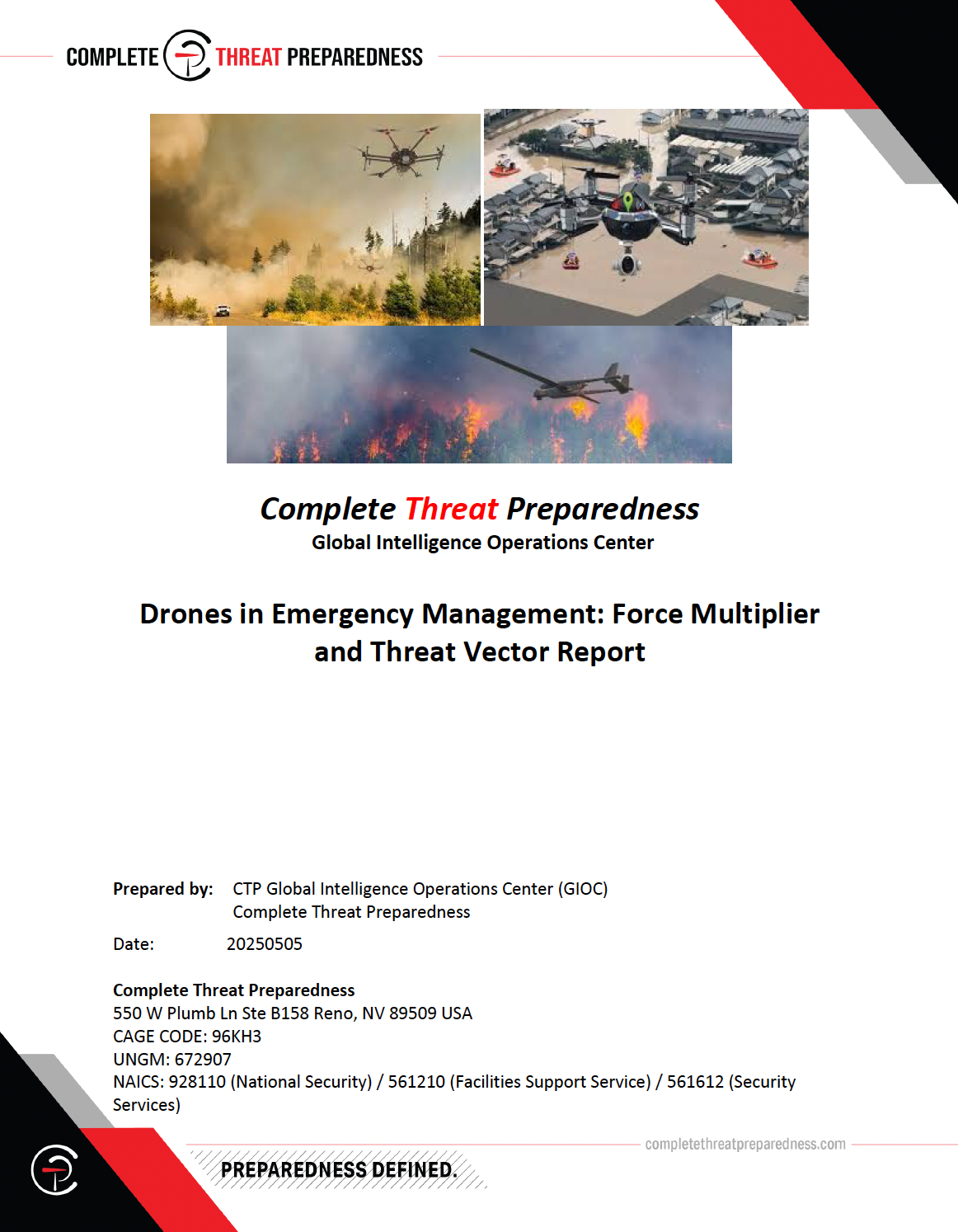 This report by Complete Threat Preparedness (CTP) delivers a comprehensive assessment of drones as both tools and threats in the emergency management arena. The analysis is geographically centered on the continental United States and extends to critical U.S.-affiliated Island regions, namely Puerto Rico and Haiti—locations where natural disasters, infrastructure vulnerabilities, and regulatory gaps create unique operational and threat landscapes.
